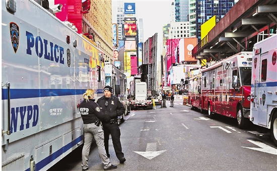 2024年12月31日,警察在美国纽约时报广场执勤。 新华社发