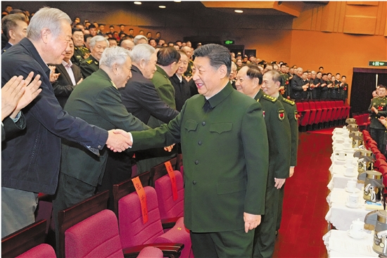 1月17日下午,中央军委慰问驻京部队老干部迎新春文艺演出在北京举行。中共中央总书记、国家主席、中央军委主席习近平观看演出,向在座的军队老同志,向全军离退休老干部,致以节日问候和新春祝福。 新华社记者 李刚 摄
