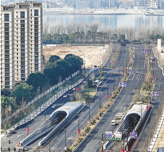 秦望隧道江南出入口。 本报记者 董旭明 彭鹏 王柯宇 摄