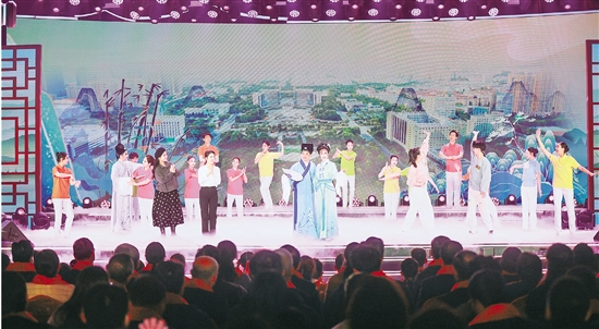 1月22日晚,2025年浙江省农村文化礼堂“我们的村晚”省主场活动在海宁市盐官镇桃园村文化礼堂举行。从2015年我省举办第一届省级“村晚”至今,“我们的村晚”已经走过十年。图为演员们表演音乐说唱《新桑园访妻》。
