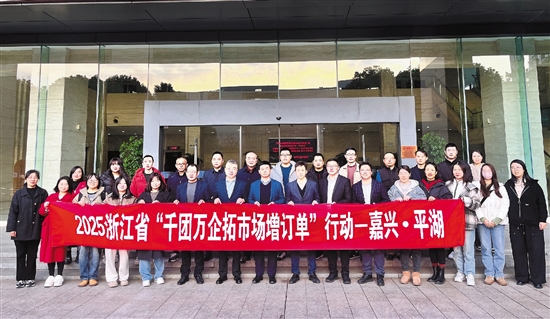 嘉兴平湖25家童车企业出发前合影。 本报记者 拜喆喆 摄