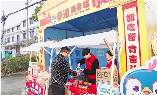 白石省际交界点服务驿站里,志愿者为途经此处的返乡人员提供服务。 共享联盟·常山 吴贤林 摄