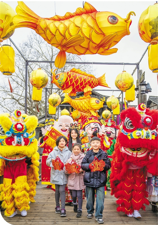 1月26日,乌镇景区举办了年味浓郁的民俗活动,福禄寿喜财等NPC(游戏中的非玩家角色)身着传统服饰,为游客带来精彩的表演。