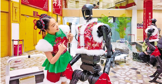 总台春晚后台,《秧BOT》演员与机器人互动。 受访企业供图