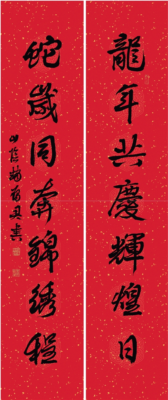 春联 《龙年共庆辉煌日 蛇岁同奔锦绣程》 赵雁君 书