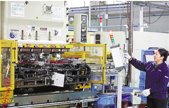 2月6日,湖州剑力金属制品有限公司多条全自动生产线高速运转,工人全力赶制汽车安全系统金属零部件订单。 本报记者 吕之遥 拍友 白羽 摄