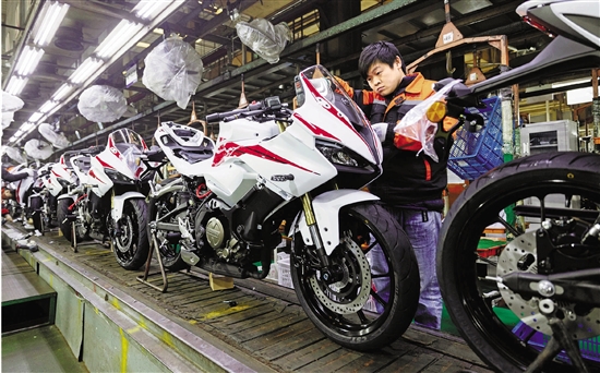 2月7日,温岭市钱江摩托股份有限公司生产车间内,发动机轰鸣声、机械加工声此起彼伏,工人正熟练地操作着设备,开足马力赶订单。 本报记者 朱海伟 拍友 徐伟杰 王华琦 摄
