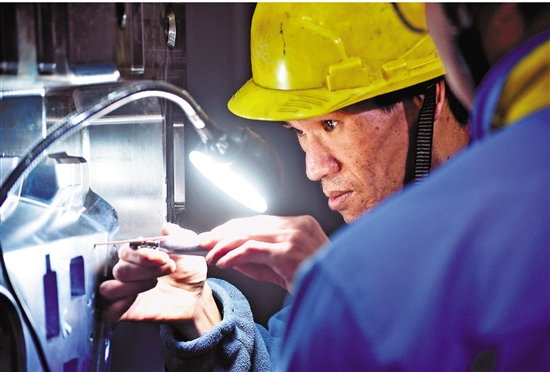 2月6日,宁波明飞科技有限公司宁海生产基地,数控机床切削声与各种马达声汇聚成新春交响曲,工人们在一丝不苟加工模具,让各部件做到严丝合缝。 本报记者 潘海松 摄