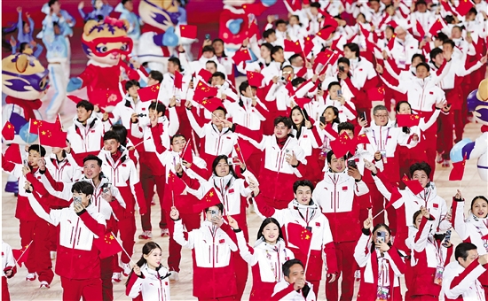 中国体育代表团在开幕式上入场。 新华社记者 杨磊 摄