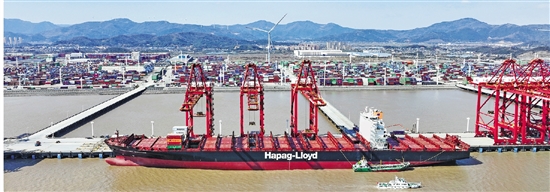 首航船“法兰克福”轮靠泊在梅山港区。 通讯员 汪舒婷 摄
