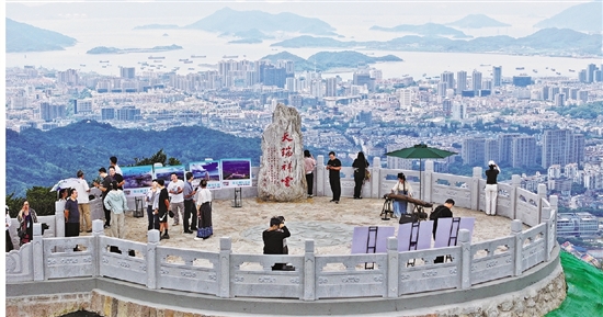 从东海百里文廊俯瞰定海城