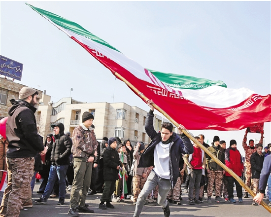 2月10日,在伊朗首都德黑兰街头,民众参加纪念伊朗伊斯兰革命胜利46周年集会。