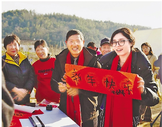 海外人才米娜跟着当地书法爱好者亲手体验写春联 房霏斐 摄