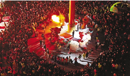 平湖山海几千重景区主打夜游,这里的打铁花表演、传统民俗活动、歌舞演出等吸引了众多游客。