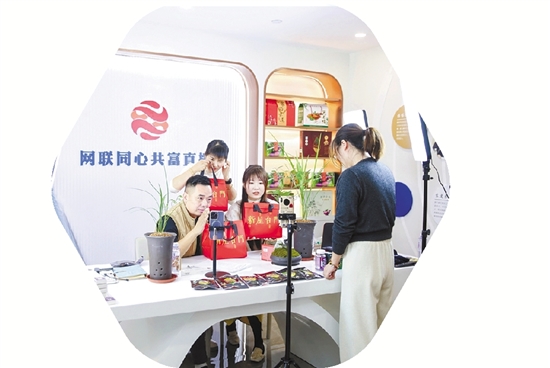 2024年11月,全省新的社会阶层人士统战工作实践创新基地(同心荟)规范化建设推进会在绍兴召开,与会人士现场参观网联会直播活动。