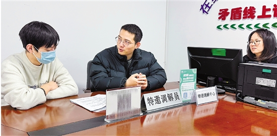 记者(中)尝试从情理方面与当事人沟通。 拍友 卢海晨 摄
