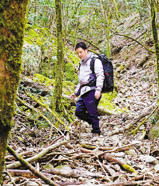 周勇在百山祖园区采样。本报记者 邱建平 摄