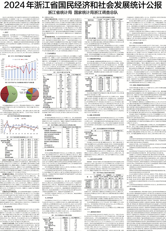 [1]本公报所列各项数据均为年度初步统计数据,最终核实数以中国统计出版社出版的《浙江统计年鉴—2025》公布的数据为准。部分数据因四舍五入原因,存在与分项合计不等的情况。