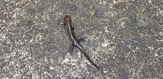在清理落叶时,我们幸运地见到了成体小鲵。 本报记者 周杭琪 摄