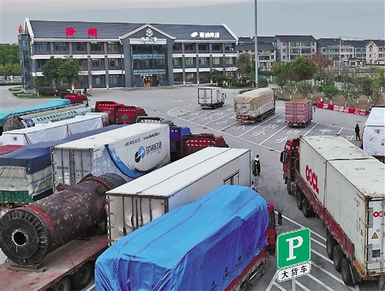 汾湖“司机之家”的货车停车场。 通讯员 蒋雯霞 汪慧 摄