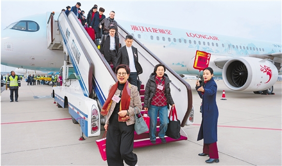 肩负全省人民的重托,出席十四届全国人大三次会议的浙江代表团3月3日下午乘机抵达首都北京。