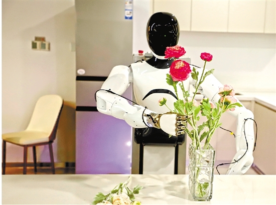 中移(杭州)信息技术有限公司的机器人正在插花、倒水