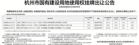 杭州市国有建设用地使用权挂牌出让公告