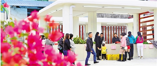 广西柳州市进德镇探索庭院经济发展模式,将乡村、文化、旅游等要素叠加。图为进德镇乐山村长安屯,游客在庭院集市里采购土特产。 新华社发