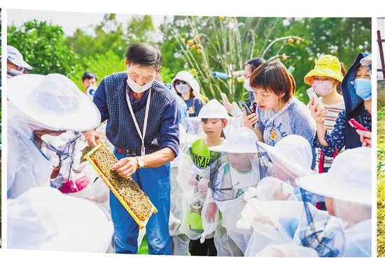 宁波四明山龙观庄园,游客在村民指导下体验蜂蜜制作。 受访者供图