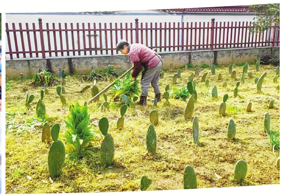 龙游农户祝宝香在自家庭院给仙人掌除草。 潮新闻记者 梅玲玲 摄