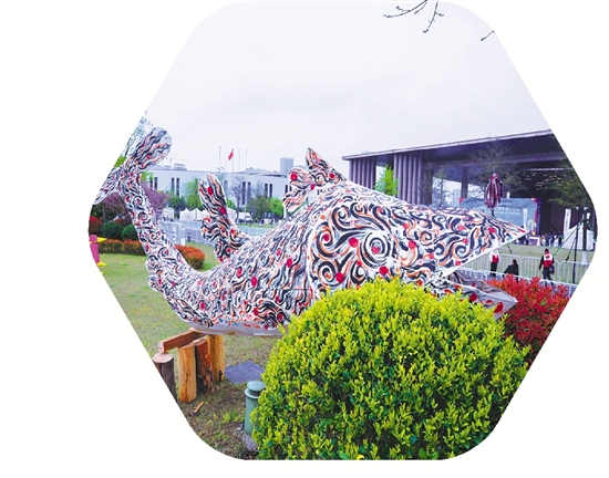2025杭州梦想小镇半程马拉松现场展出的“无废”桃花鱼。