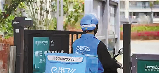 一名骑手在小区无感通行。 泰顺县委社工部供图