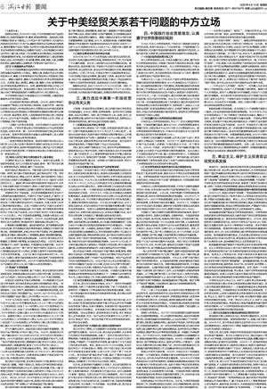 关于中美经贸关系若干问题的中方立场