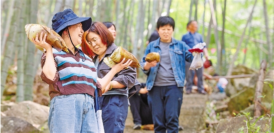 | 挥舞锄头展示掘笋技艺,惊呼声连连……4月9日,位于温州市瓯海区泽雅镇双田村的竹笋生产基地内热火朝天。当天,首届瓯海竹笋文化周拉开帷幕,游客不仅能参与挖笋,还可以免费带走1颗,吸引不少人来赏春寻鲜。 本报记者 王艳琼 共享联盟·瓯海 庄苗苗 王斌 文/摄 |