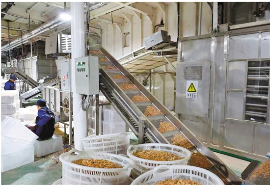 生产线上,新捕捞的海虾已经变成了虾米。 通讯员 倪建军 摄