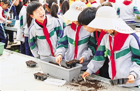 学生在本道智慧果蔬园体验种植乐趣 (图片由南浔区旧馆街道提供)