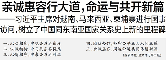 ——习近平主席对越南、马来西亚、柬埔寨进行国事访问,树立了中国同东南亚国家关系史上新的里程碑