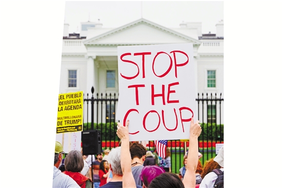 4月19日,人们在美国首都华盛顿白宫门前参加抗议活动。 新华社发