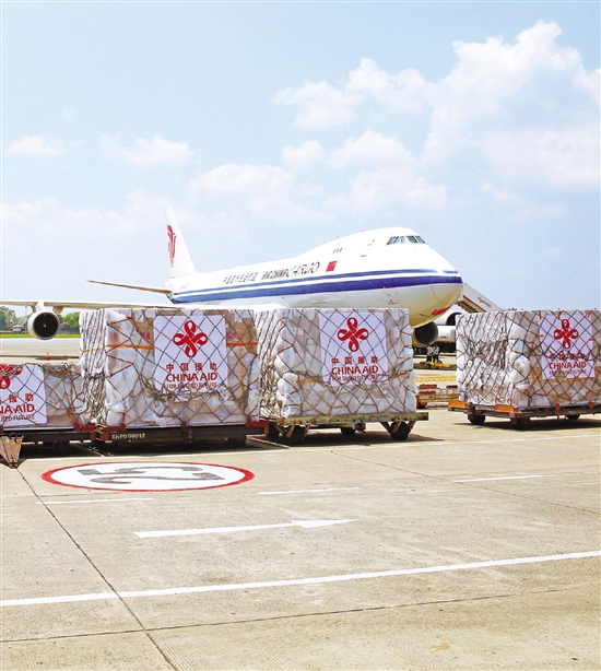 中国政府向缅甸提供的第七批紧急人道主义地震救灾援助物资4月20日抵达缅甸仰光国际机场。