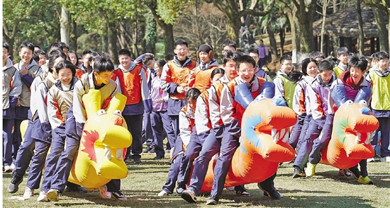 近日,湖州市第五中学教育集团组织学生开展了一场活力满满的团建活动,让学生们不仅释放了压力,更增强了团队凝聚力。在“毛毛虫”接力赛中,学生们深刻领悟到“稳中求进”的团队协作智慧。 (顾瑶瑶 董丹璐)