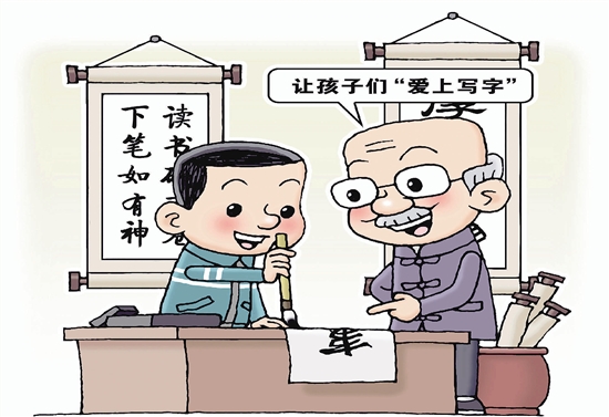 如今,随着手机、电脑的普及,不少人在生活中都存在“汉字失写症”。特别是一些中小学生只在完成课堂作业时动笔写字,大多数时候靠拼音输入法打字,有时使用拍照、语音转文字等技术手段代替笔记。业内人士认为,学校、家庭、社会要进一步形成合力,让青少年重视规范汉字书写,能写字、爱写字、写好字。 新华社发 徐骏 作 |