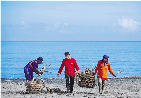 4月22日是第56个。在印度尼西亚班达亚齐,志愿者在迎接世界地球日的活动上清理沙滩。