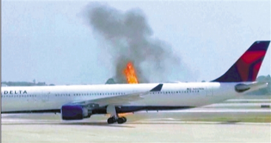 4月21日,在美国佛罗里达州奥兰多国际机场,一架客机在停机坪上起火。美国达美航空公司一架客机21日起飞前发动机起火,机上人员借助应急滑梯紧急撤离,所幸没有人员伤亡。美国联邦航空局表示将对事故展开调查。 新华社发