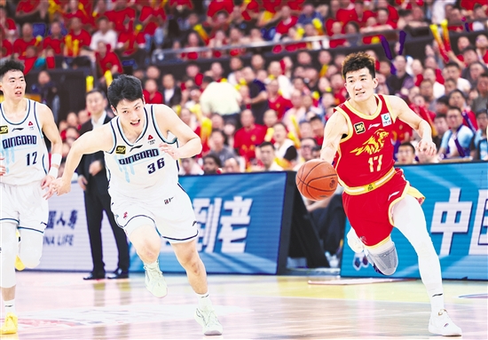| 4月23日,CBA季后赛8进4比赛第五场,浙江方兴渡男篮(红衣)在主场黄龙体育馆迎战青岛男篮。经过4节较量,浙江方兴渡男篮以101∶96险胜青岛男篮,本场比赛方兴渡男篮6人得分上双,最终以总比分3∶2战胜青岛男篮,晋级半决赛。半决赛,浙江方兴渡男篮将迎战老对手辽宁男篮。 本报记者 王建龙 摄 |
