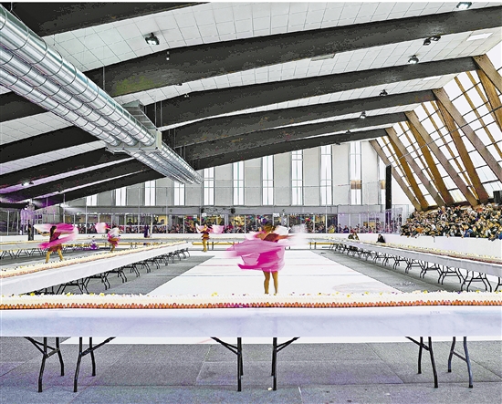 这是4月23日在法国首都巴黎郊区阿让特伊镇一处溜冰场拍摄的长121.8米的草莓蛋糕。