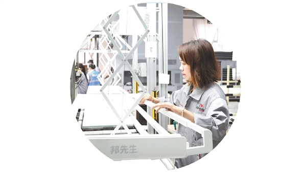 浙江好易点科技股份有限公司车间内,工人正在组装智能家居产品晾衣机。 陈怡滢 摄
