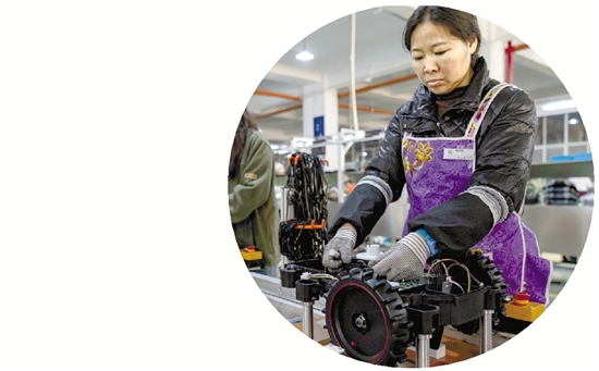 浙江三锋实业股份有限公司产品组装生产线上,工人忙着生产电动工具产品。 胡肖飞 摄