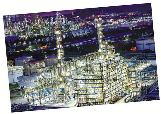 镇海炼化厂区因壮观的夜景成为网红打卡点。