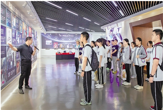 游客在康奈集团厂区参观,了解温州皮鞋发展史。