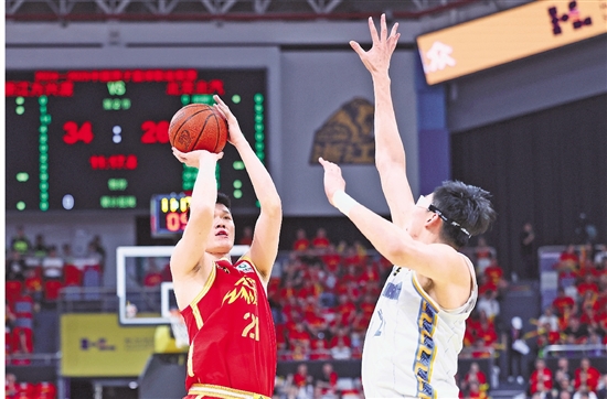 5月7日晚,CBA总决赛第一场,浙江方兴渡男篮在主场杭州黄龙体育馆迎战北京男篮。上半场两队战成55平,下半场第四节浙江方兴渡男篮突然“断电”,整节只拿到9分,最终以87比101不敌北京队。5月9日,浙江方兴渡男篮将继续在主场对阵北京队。 本报记者 王建龙 摄 |